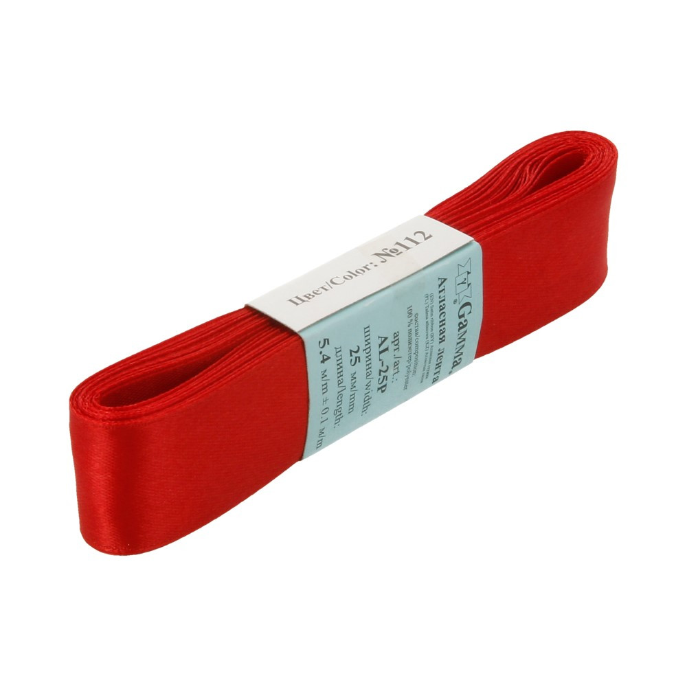 Лента атласная 25 мм ( 1 ") "Gamma" ФАСОВКА 5.4 м №112 т.красный