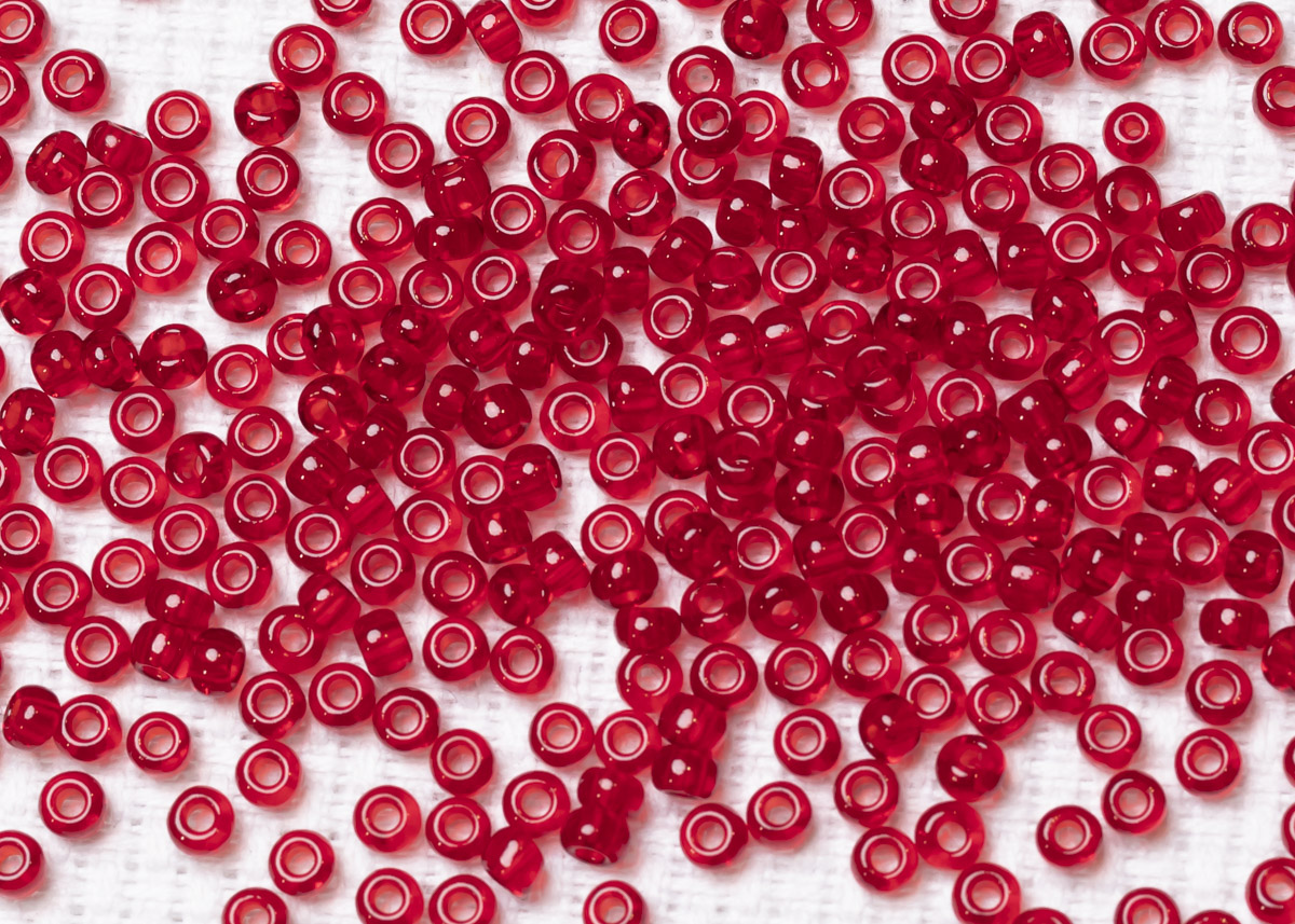 чешский фирмы "Прециоса", цвет темно-красный полупрозрачный, размер 8/0, цена за 1 упаковку(50 грамм).