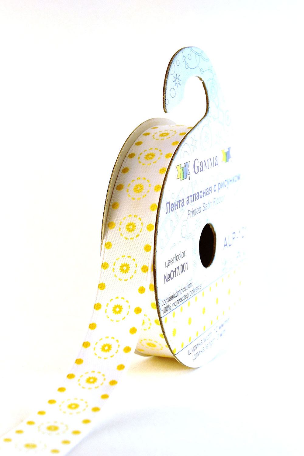 Лента атласная 12 мм ( 1/2 ") с рисунком "Gamma" ФАСОВКА 3 м O17/001 белый/т.желтый